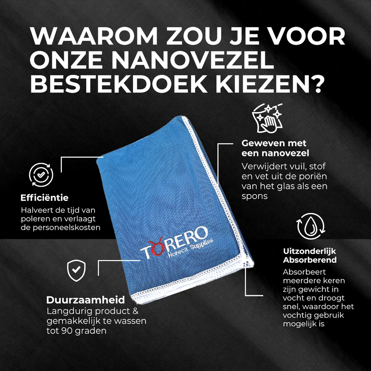 Wij werken al een paar jaar met de fantastische doeken van Torero. Het poleren van glas- en zilverwerk is een fluitje van een cent en alles droogt mooi op. De doeken gaan lang mee! Recent nog meer doeken aangeschaft, wij zijn er dol op! Het enige jammere is wel - en dat doet de kwaliteit natuurlijk niet af - , vinden wij ; dat de doeken per stuk verpakt zitten in plastic. zeker bij het kopen van een groot aantal hoeft dit natuurlijk niet. Wellicht vinden jullie hier ooit een andere oplossing voor.